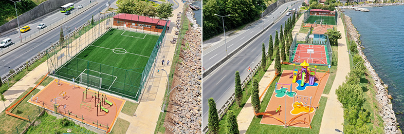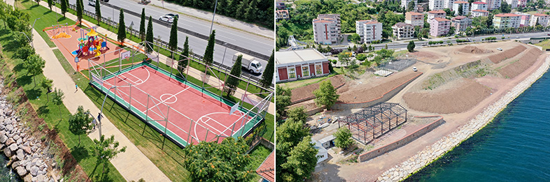 Gölcük Değirmendere-Halıdere arası sahil alanında Park ve Bahçeler Dairesi ekipleri yaklaşık 1 kilometrelik sahil kısmının otomatik sulama tesisatı ve çim serimini tamamladı. Halıdere ve Değirmendere arasından geçen dere üzerine ahşap geçit yolu yapıldı. İnce işçiliğe geçilen mescit ve tuvalet binasının çelik imalatı tamamlandı. Değirmendere tarafında kafeterya binası çelik imalatları hali hazır da yapımına devam ediyor. Halıdere tarafında mevcutta bulunan futbol sahası ve idari bina revize edildi. Bir adet basketbol sahası oyun grubu ve fitness alanı imalatları tamamlanarak, vatandaşların kullanımına açıldı.