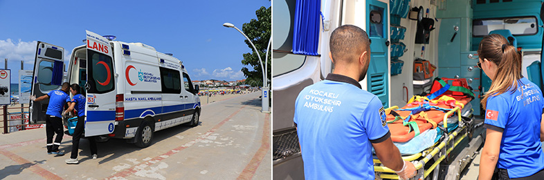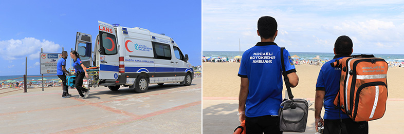 Kocaeli Büyükşehir Belediyesi’nin 2005 yılından bu yana sahillerde 7/24 görev yapan ekipleri sayesinde boğulma ve deniz kazalarına karşı anında müdahale edilerek, Kocaeli sahillerinin gönül rahatlığıyla yüzülebilir olması sağlanıyor. Büyükşehir Belediyesi’nin sorumluluğundaki halk plajlarında boğulma tehlikesi atlatan vatandaşlara ilk müdahale hasta nakil ambulans birimi tarafından yapılıyor. Turizm sezonu boyunca yerli ve yabancı turistlere hizmet veren sahillerdeki ekipler; plajda oluşan güneş çarpması, boğulma, alerji gibi olaylara da kısa sürede müdahale ediyor. 15 Haziran’da sahillerde göreve başlayan ekipler acil müdahalede her saniyenin değerli olduğunu bilerek bugüne kadar 166 vakaya müdahalede bulunup, sağlık ve hastaneye nakil hizmeti verdi.