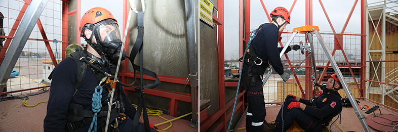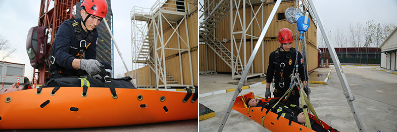 Uygulamalı eğitimde, dar bir alanda mekân güvenlik sistemleri kurularak müdahale malzemeleri hazırlandı. Olay yerinde güvenlik kontrolleri yapılarak kazazedeye erişimde kullanılacak farklı yaklaşımlar ayrı ayrı tecrübe edildi. Son olarak bu tip yerlerde kullanılabilecek sedye ve sabitleme metotları da uygulamalı olarak çalışıldı.