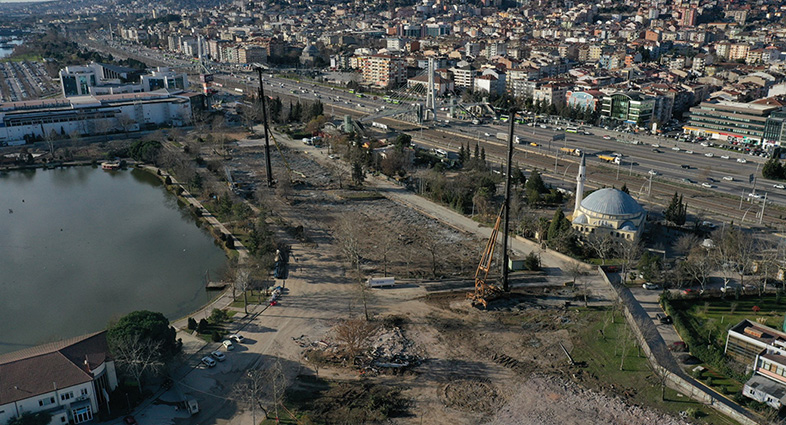 Kocaeli fuarı alanında yapımı hızla devam eden İzmit Millet Bahçesinde fore kazık imalatlarına başlandı