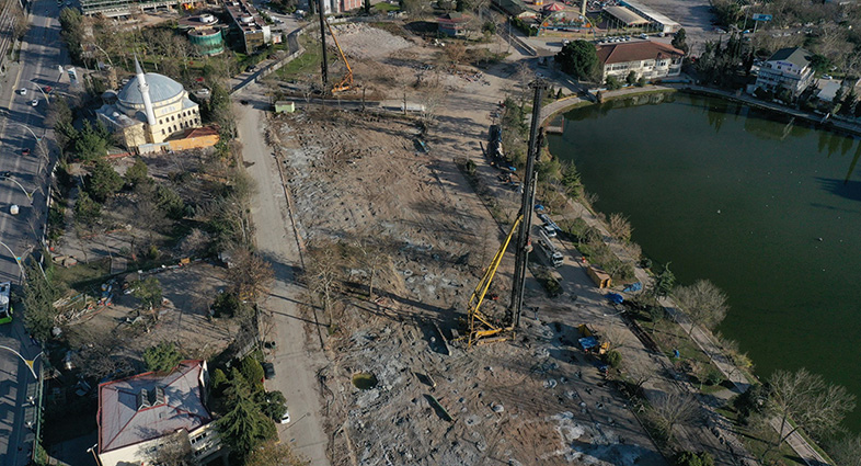 İzmit Fuar alanı Kocaeli Büyükşehir Belediyesi’nce Millet Bahçesine dönüştürülüyor. Eski yapıların yıkıldığı Kocaeli Fuarı’nda zemin güçlendirilmesi için fore kazık imalatları devam ediyor. Ekipler, projenin A ve B blok kısmında fore kazık imalatını tamamladı. C ve D bloğun bulunduğu alanda fore kazık imalatına başlandı.