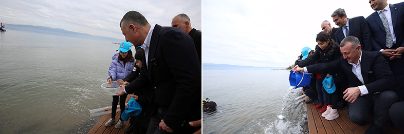 Başkan Büyükakın, protokol, öğrenciler ve vatandaşlar program sonunda balık salınımı gerçekleştirdi. Levrek, Kalkan ve Çupra türlerindeki 6 bin yavru balık, Ereğli Sahili’nden denize bırakıldı. Böylece İzmit Körfezi’ne bırakılan yavru balık sayısı 36 bine ulaştı.