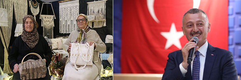 Makroma standında 73 yaşındaki KOMEK kursiyerleri Hanife Serim ve Ferihan Kırateli ile bir süre sohbet eden Başkan Büyükakın, kursiyerleri azimlerinden dolayı tebrik etti. Bahçecik’te oturduğunu ifade eden Hanife Serim, ‘’KO-MEK’te makrome iğne oyası ve nakış kurslarına geliyorum. Buraya çok zevk alarak geliyorum aynı zamanda amcamın kızı olan Ferihan ile geliyorum nakış ve iğne oyası yaparken biraz zorlanıyorum ama burası benim için bir terapi yeri oluyor’2 dedi. Ferihan Kırateli ise konuşmasında, ‘’KO-MEK’e seve seve geliyoruz şimdiye kadar hiç devamsızlık yapmadık, yaşımız ilerlemiş olabilir ama gençlerle iş yapmaktan memnunuz’’ yorumunu yaptı.