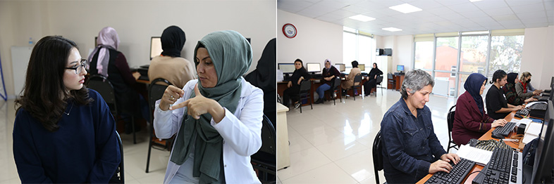İşaret dili çevirmeni Tuğba Yağmur Aktaş aracılığıyla konuştuğumuz bir diğer kursiyer Selvihan Turgut ise “KO-MEK’e geldiğim için çok mutluyum burada eğitmenimiz tarafından çok faydalı bilgiler öğreniyoruz. Ben zaman zaman çalışıyordum ama buradan mezun olunca inşallah devamlı bir işte çalışmak istiyorum” dedi. Aynı zamanda işitme engelli olan ve KO-MEK’te başarı ile eğitimlerini sürdüren eğitmen Dilber Özcan ise konuşmasında, ‘’Burada hem konuşma engelli hem de işitme engelli kursiyerlerimizin yanı sıra 3 tanede engeli olmayan kursiyerimiz bizimle birlikte eğitim görüyor. Burada eğitimlerimiz çok güzel geçiyor, kursiyerlerimiz öğrenmek için çok çaba sarf ediyorlar. Burada verdiğimiz eğitimler sayesinde hızlı klavye yazımını öğrenen kursiyerler dışarda çok rahatlıkla iş bulabilirler” diye ifade etti.
