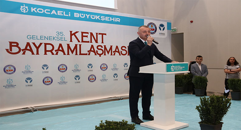 Kent bayramlaşmasının ev sahipliğini yapan Kocaeli Kent Konseyi Başkanı Ali Korkmaz ise yaptığı konuşmada, “Güzel Kocaeli’mizin güzel insanları hepinizi saygıyla selamlıyorum. Büyükşehir Belediyemizin desteği ve bizim de paydaşlığını yaptığımız 35. Kent Bayramlaşmasında halkımızı bir arada görmekten mutluluk duyuyoruz. Başta ülkemiz olmak üzere tüm dünyaya barış getirmesi dileğiyle en içten duygularımla tüm halkımızın bayramını kutluyorum. Ne yazık ki bu bayramı şehit haberleri nedeniyle buruk bir şekilde kutluyorum. 35 yıldır geleneksel hale getirdiğimiz bir programla bir aradayız. Bayramlar kentlerin kardeşlik duygularının geliştiği özel günlerdir. Ülkemizin Avrupa’ya açılan kapısı Kocaeli’miz çok özel bir kenttir” dedi.