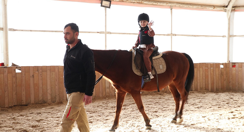 Kocaeli Büyükşehir Belediyesi Kadın ve Aile Hizmetleri Şube Müdürlüğünün organize ettiği ‘At Biniş Eğitimleri’ 4 hafta sürüyor. Eğitimlerde çocuklara at sevgisini ve at bakımı öğretiliyor. Biniş esnasında atların ürettiği titreşimler çocuklarda öğrenmeyi geliştiren sempatik sinir sisteminin aktivasyonunun yönlendirip aynı zamanda fiziksel olarak denge, kas, koordinasyon, motor sinir sistemi gelişiminin desteklenmesine fayda sağlıyor. Özellikle erken yaşta atla tanışan çocuklarda sorumluluk, liderlik, disiplin, sağduyu, özgüven, doğa ve hayvan sevgisi faktörlerinin oluşmasında yardımcı olunuyor.