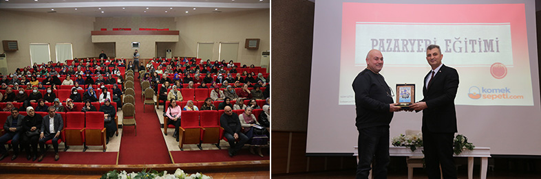 KO-MEK kursiyerine, üretim yapan tüm vatandaşlara ve bunun yanı sıra ilçe belediyelerinin açmış olduğu meslek sanat eğitimi kursiyerleri ve Halk Eğitim merkezinde eğitim gören kursiyerlere de pazar yeri uygulaması eğitimi veren KO-MEK, geçtiğimiz günlerde Gölcük Belediyesinin talebi doğrultusunda GÖLMEK kursiyerlerine yeni uygulama hakkında bilgi verdi. Gölcük Belediyesi Kongre Merkezi’nde düzenlenen etkinliğe GÖLMEK kursiyerleri yoğun ilgi gösterdi. Eğitmen Volkan Öztürk’ün sunumu ile gerçekleşen eğitimde, katılımcılara e-ticaret alanında satış yapabilmeleri için gerekli olan bilgiler verildi. Eğitime katılan Gölcük Belediye Başkanı Ali Yıldırım Sezer, katılımcılara başarılar diledi.