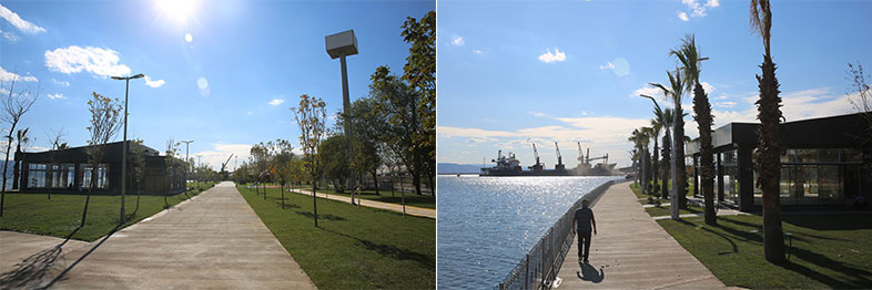 370 metrekarelik sahil yürüyüş yoluna süpürgeli beton imalatı yapılırken ara yürüyüş ve bağlantı yollarına da aynı şekilde süpürgeli beton imalatı yapıldı. Ayrıca 320 metrelik bisiklet yolunun imalatı yapımı da tamamlandı. Toplamda 550 metre ferforje imalatı yapıldı.