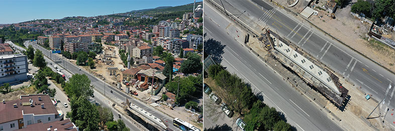 Kuruçeşme’ye kadar uzanacak tramvay hattında 332 m uzunluğunda 9 ayaklı ve 8 açıklıklı üst geçidin kirişleri yakın zamanda yerleştirilmeye başlanacak