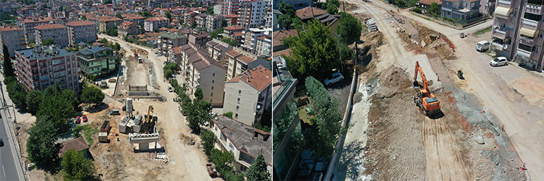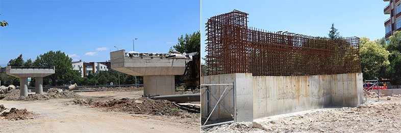 Fen İşleri Dairesi Başkanlığı ekipleri proje dahilinde 332 metrelik köprüyü taşıyacak olan 9 ayaktan 8’inin inşasını tamamladı. Bir ayağın ise son olarak başlık kirişi yapılıyor. İş kapsamında testleri tamamlanan sismik izolatörlerin montajı yakın zaman sonra bitirilecek. Toplamda 18 metre uzunluğunda 150 adet çelik kirişin ayaklar üzerine yerleştirileceği projede bin 500 ton çelik kullanılacak. Proje çalışmaları kapsamında köprü yaklaşımlarının iniş ve çıkışlarında zemin iyileştirmeleri tamamlanırken trafo yapısının temel kazısı sonrası betonarme imalatlarına başlandı.