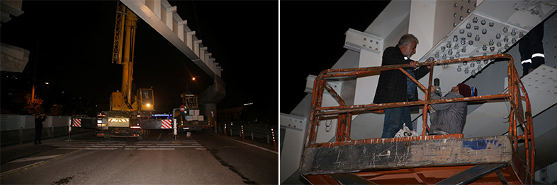 Kuruçeşme tramvay köprüsünün kiriş montajları tamamlanıyor