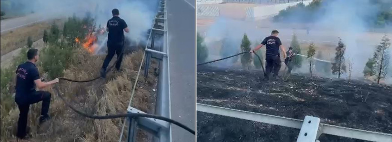 Kocaeli Büyükşehir Belediye Başkanı Tahir Büyükakın’ın talimatıyla Kocaeli İtfaiyesi’nden 8 araç ve 16 personel, Muğla’nın Marmaris ilçesinde çıkan orman yangınını söndürme çalışmalarına destek için gönderilmişti. Marmaris'teki söndürme çalışmalarını tamamlayarak Kocaeli'ye dönen Kocaeli Büyükşehir Belediyesi İtfaiye ekipleri, dönüş sırasında İzmir Otoyolu’nda bir yangına daha müdahale etti.