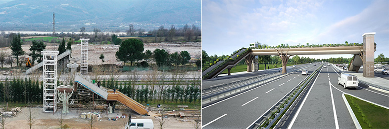 Yaz kış demeden yıl boyunca yüzbinlerce doğaseveri ağırlayan Ormanya, şimdi de yaya üst geçidiyle odak noktası olmaya hazırlanıyor. Üst geçit, yayaların D-100 Karayolu üzerinden Ormanya’ya güvenli ulaşımını sağlarken, tasarımıyla da model ve örnek olacak. Köprünün iki kenar ve orta bölümündeki ayakları ağaç şeklinde tasarlanırken, ayrı bir görsel zenginliğe sahip köprü üstündeki saksılar ise her mevsim rengârenk çiçeklerle süslenecek.