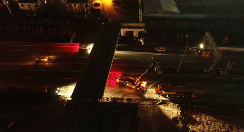 Otoyol köprüsünde kiriş montajı gece yapıldı