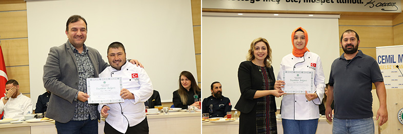 Özel gereksinimli öğrenciler ve Kocaeli Üniversitesi Turizm Fakültesi Gastronomi ve Mutfak Sanatları Bölümü öğrencilerinin katıldığı yemek yarışmasında, Turuncu ve Turkuaz takım olarak 24 öğrenci Kocaeli’nin geleneksel yemeklerini yaptı. Sütlü Kesme Çorba, Tavuklu Kabak Dolması, Şehriyeli Pirinç Pilavı, Mancarlı Pide, Zerde, Kızılcık Şerbetini hazırlayan yarışmacılar el lezzetlerinin yanı sıra sevgilerini de katarak muhteşem yemekleri jüriye sundu. Sağlık ve Sosyal Hizmetler Dairesi Başkanı Ebubekir Ardıç, çeşitli televizyon programlarına aşçı olarak katılan ve aynı zamanda Kocaeli Üniversitesi Gastronomi Mutfak Sanatları Bölümü Öğretim Görevlisi Rüzgar Sünbül’ün de aralarında bulunduğu jüri üyeleri tarafından tadım ve oylama gerçekleştirildi. Tüm yemekler jüri üyelerinin beğenisini kazandı. Program öğrencilere verilen sertifika takdimi ile son buldu.