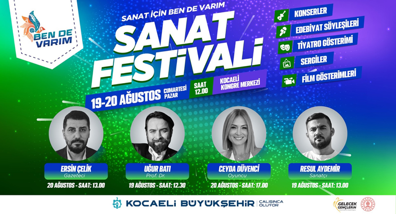 Kocaeli Büyükşehir Belediyesi tarafından 19-20 Ağustos tarihlerinde düzenlenecek Sanat için Ben De Varım Festivali için hazırlıklar sürüyor. Kocaeli Kongre Merkezi’nde gerçekleştirilecek festivalde eğitim süresince özel gereksinimli öğrencilerin ürettiği görsel ve geleneksel sanat eserleri sergilenecek. Üretilen edebi eserler ise bir seçki kitap olarak yayınlanacak. Ayrıca bir öğrencinin yazdığı ve rap tarzında bestelenerek klibi çekilen bir şiirin festivalde gösterimi yapılacak.