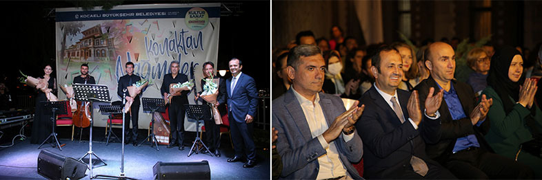 Kocaeli Büyükşehir Belediyesi, geçmişten günümüze taşınmış en önemli değerlerden birisi olan Türk Sanat Müziği’ni, “Konaktan Nağmeler” adı taşıyan muhteşem bir konserle sanatseverlerle buluşturdu. Kentin en kıymetli tarihi eserlerinden olan Selim Sırrı Paşa Konağı’nın bahçesinde gerçekleşen konser, derin duygulara hitap ederek katılımcılara güzel anlar yaşattı. Bu özel geceye Kocaeli Büyükşehir Belediye Başkan Vekili Yaşar Çakmak da katıldı. Başkan Vekili Çakmak, konser sonunda sanatçılara çiçek takdim etti.