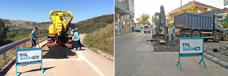 Ana cadde, bulvar ve köy yollarında parke, bordür, beton gibi yolların yapımı ve tamiratı, yol üzerindeki altyapı, baca ve ızgara kapaklarının bakım onarımları, demir yaya korkuluklarının boyanması ve her türlü yol bakım onarım ve yapım çalışmaları Yol Bakım Timi tarafından yapılıyor. Büyükşehir Belediyesi Yol Bakım Timi, İzmit Ömer Türkçakal Bulvarında altyapı çalışmaları sebebiyle bozulan yolda asfaltlama yaptı. Kartepe Derbent merkez ve Ahmet Lütfü Arat Bulvarı, Kandıra Kubuzlu yolu, Çayırova 23 Nisan ve Fatih Caddesinde bozuk asfalt ve kaldırım onarımı çalışması yapan ekipler, KOÜ Umuttepe Hastanesi otobüs durakları önünde bulunan yağmur suyu mazgalında onarım yaptı.