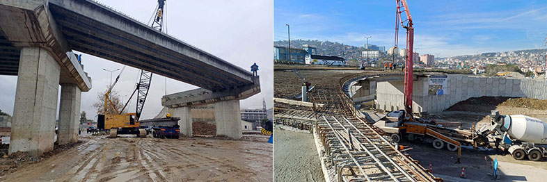 Kandıra yolundaki trafiği kesintisiz bir hale getirmeyi planlayan Büyükşehir, Yeşilova Solaklar Köprülü Kavşağında kiriş montaj ve döşeme betonu imalatı yapıyor